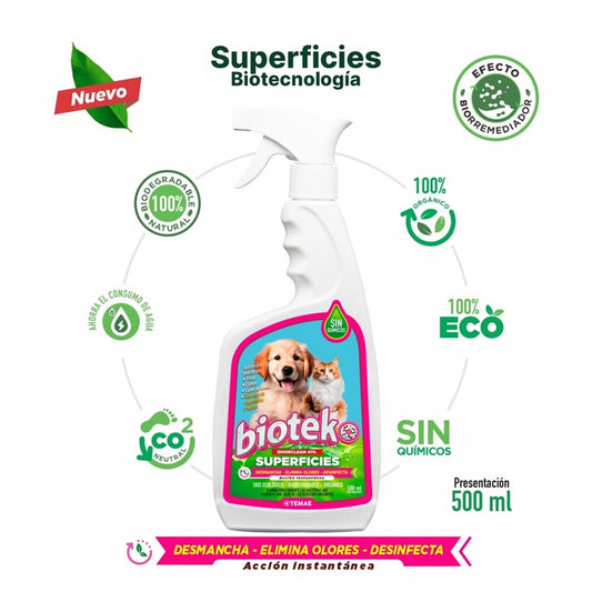 BIOTEKO SUPERFICIES 500 ML | Eliminador De Olores y Manchas De Mascotas